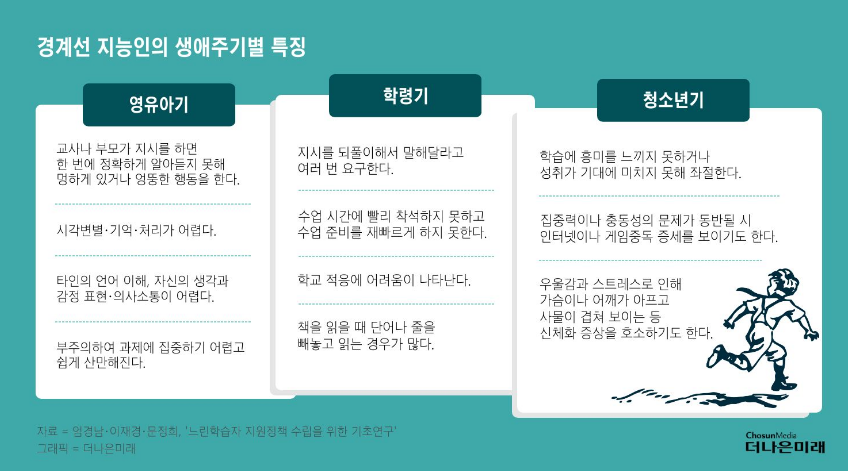 느린 학습자 생애주기별 특징(자료 : 더나은미래)